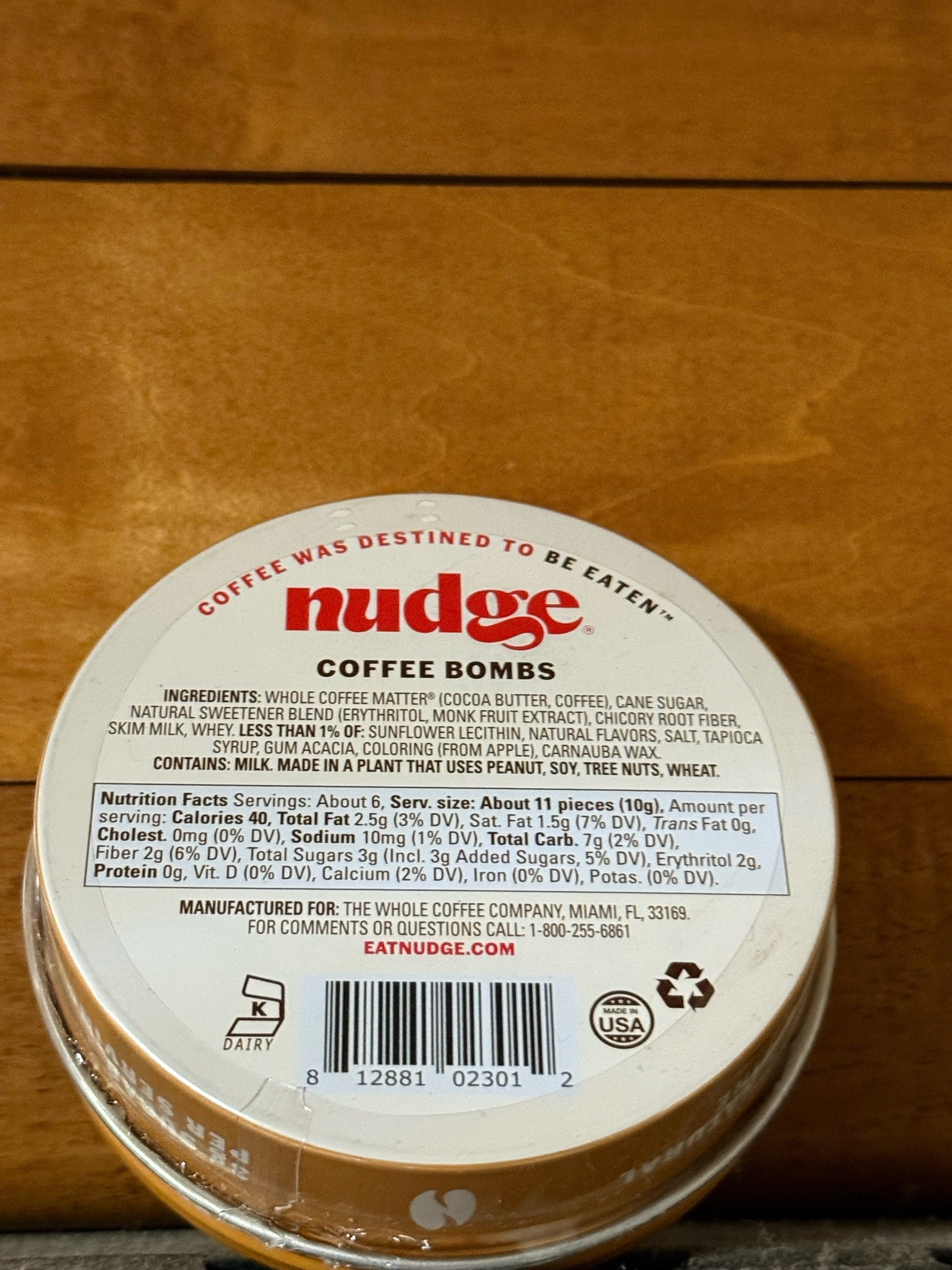 Shop › Image 1 of 3 Image 2 of 3 Image 3 of 3 $3.50 Nudge coffee candy Quantity: Add To Cart Added! Nudge coffee candy